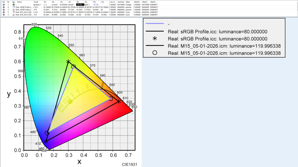 また、広色域(sRGB 100%前後以上)のモバイルノートPCと並べて使うと、同じ画像でも色の濃さ(鮮やかさ)の差が分かりやすい点は注意です。
