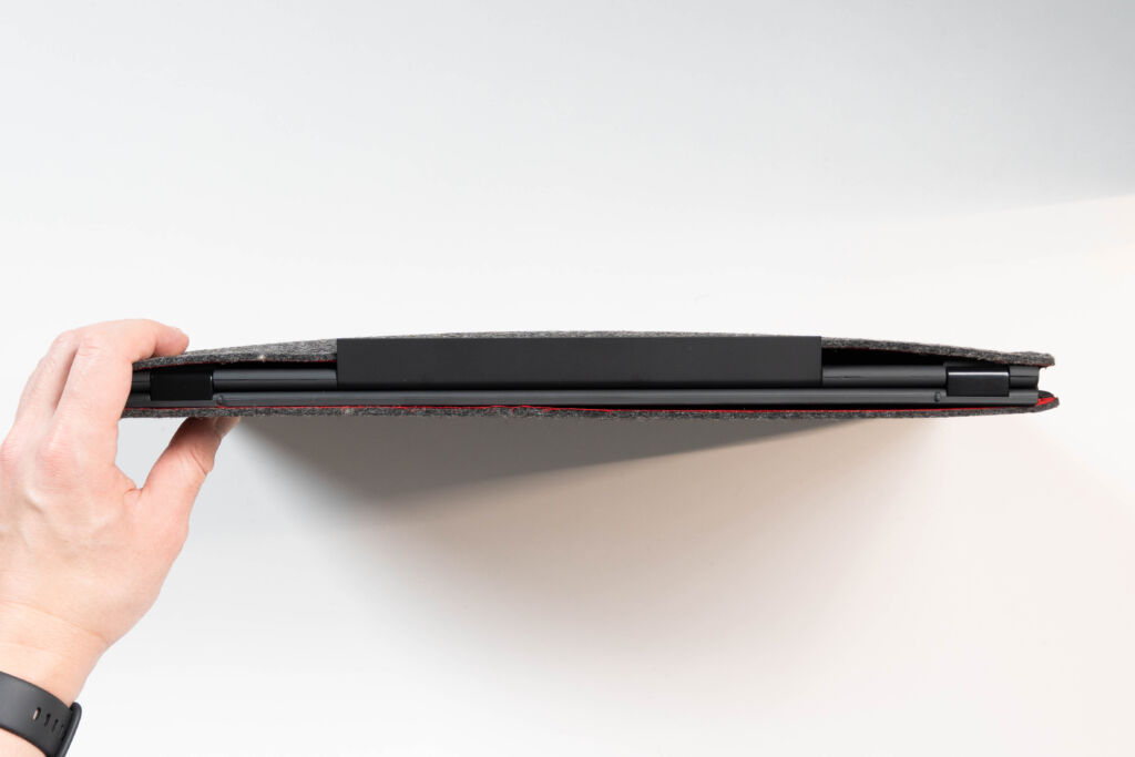 付属のフェルトケースは、モニター本体をほぼジャストサイズで収納できます。