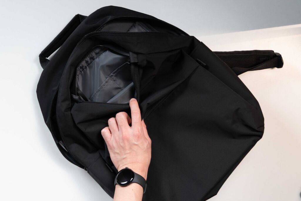 ユニクロのファンクショナルバックパックは、容量23Lのデイパック。日帰りの外出や通勤・通学にちょうどいいサイズ感で、ノートPCを持ち運ぶ人に嬉しい装備が一通り揃っています。
