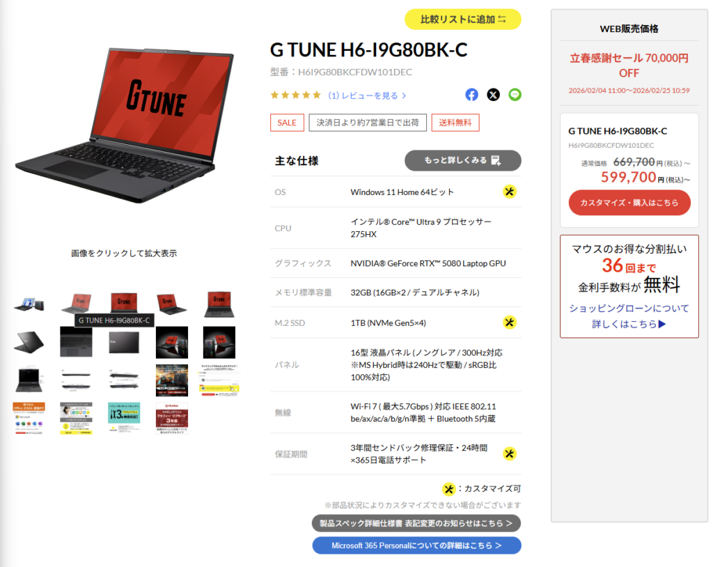 マウスコンピューターの「立春感謝セール」は、2026年2月25日(水)10:59までの期間限定。対象PCが最大70,000円オフで、ノートもデスクトップもセール価格になっています。
