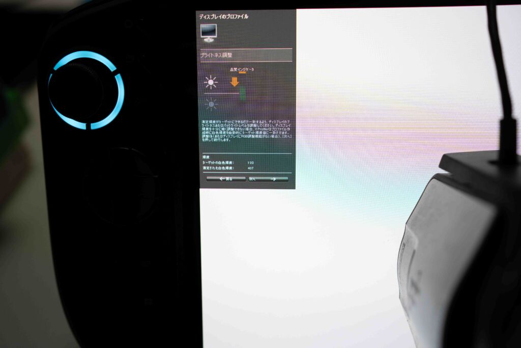 画面の明るさは実測で最大約438nitでした。携帯ゲーミングPCとしてはかなり明るい部類で、室内はもちろん、日中の明るい環境でも視認性を確保しやすいレベルです。外出先や窓際で使うことを想定している人にとって、この輝度は安心材料になります。