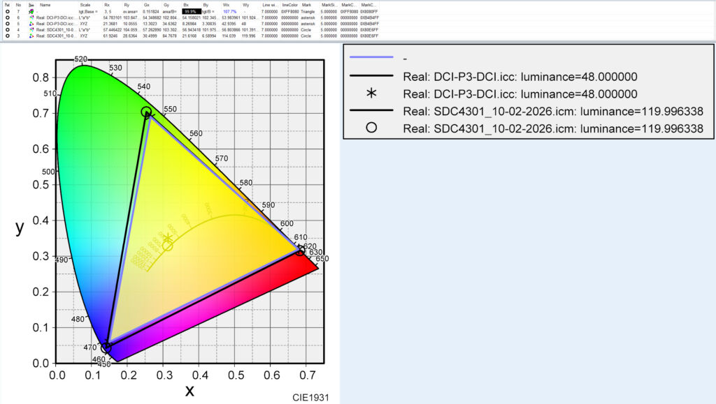 実際に測定データを見ると、単に色域が広いだけでなく、トーンカーブ(ガンマ)の暴れが少なく自然でした。派手に盛って“ビビッドに見せる”方向ではなく、明るさのつながりが滑らかで、暗部〜中間調〜ハイライトまでのバランスが取りやすい印象です。