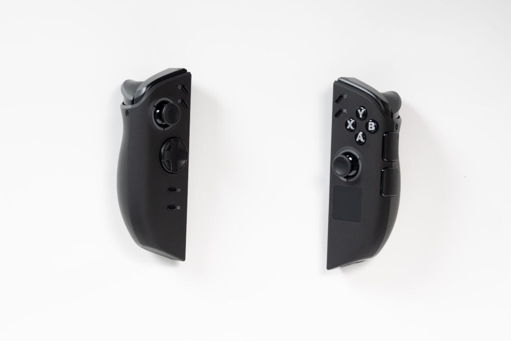 コントローラーを装着した状態だと、見た目はかなり横長。8.8型の大画面と相まって「携帯ゲーム機」というより、タブレット+左右グリップに近い印象です。手に持った瞬間に“画面がデカい”と感じやすく、視認性の良さは強み。一方で、収納性や取り回しはコンパクト機より不利になりやすいので、使い方は「持ち歩き最優先」よりも「家の中で快適に遊ぶ」寄りになります。