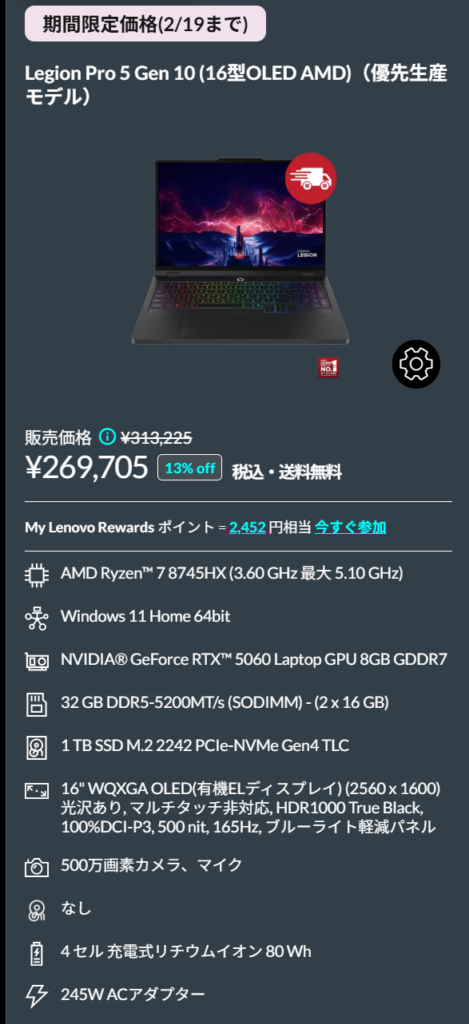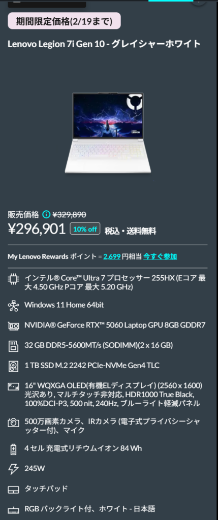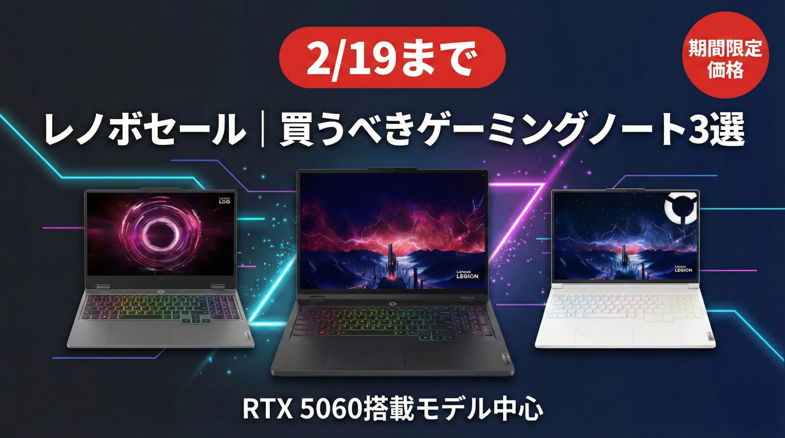 2/19までの期間限定価格で、レノボのゲーミングノートが一気に狙い目になっています。