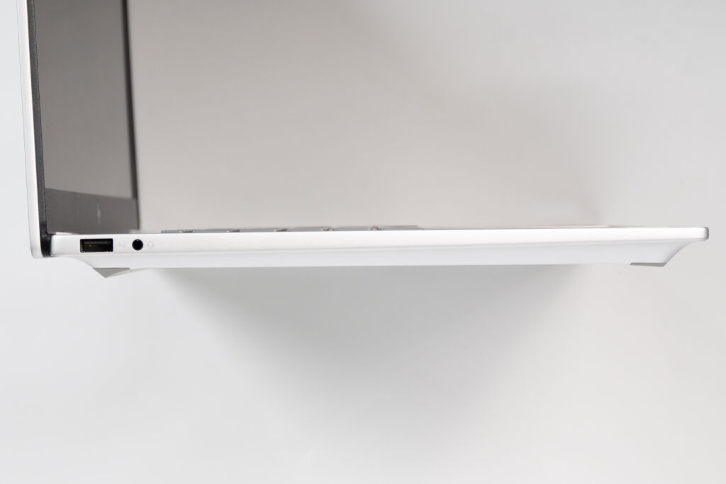 左側のインターフェースは、USB-A(5Gbps)を搭載。マウスやUSBメモリなど、従来の周辺機器をそのまま接続できるのは便利です。加えて、3.5mmヘッドホン端子も備えており、有線イヤホン/ヘッドセット派でも困りにくい構成になっています。