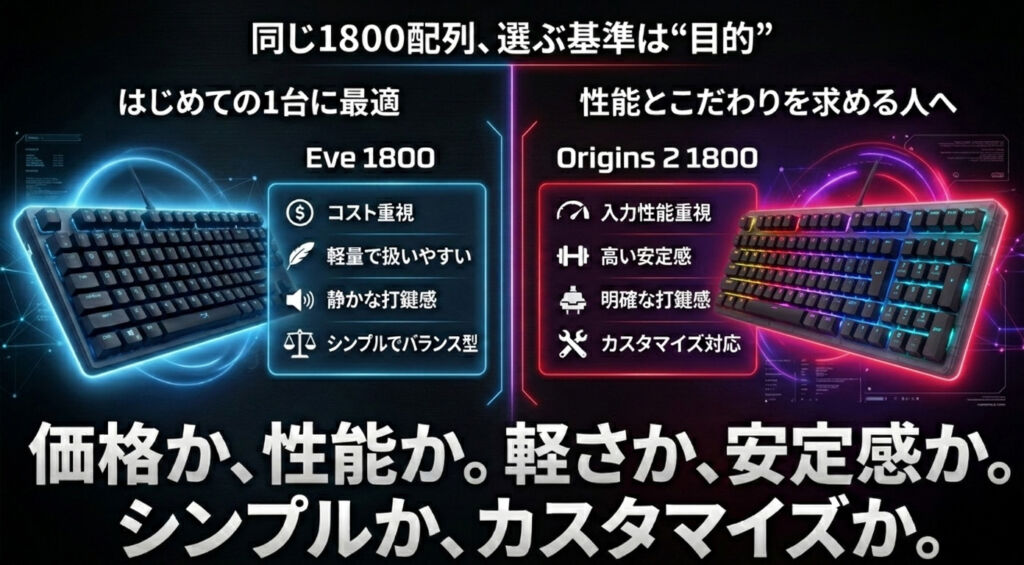 Origins 2 1800は、競技性を意識したプレイや、入力性能・カスタマイズ性を重視する人向けの上位モデルです。