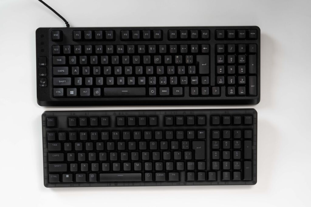 テンキーは欲しい、でもフルサイズは横に広すぎる、マウススペースも確保したい、という人にとって、非常にバランスの取れた配列です。この点は両モデル共通のメリットです。