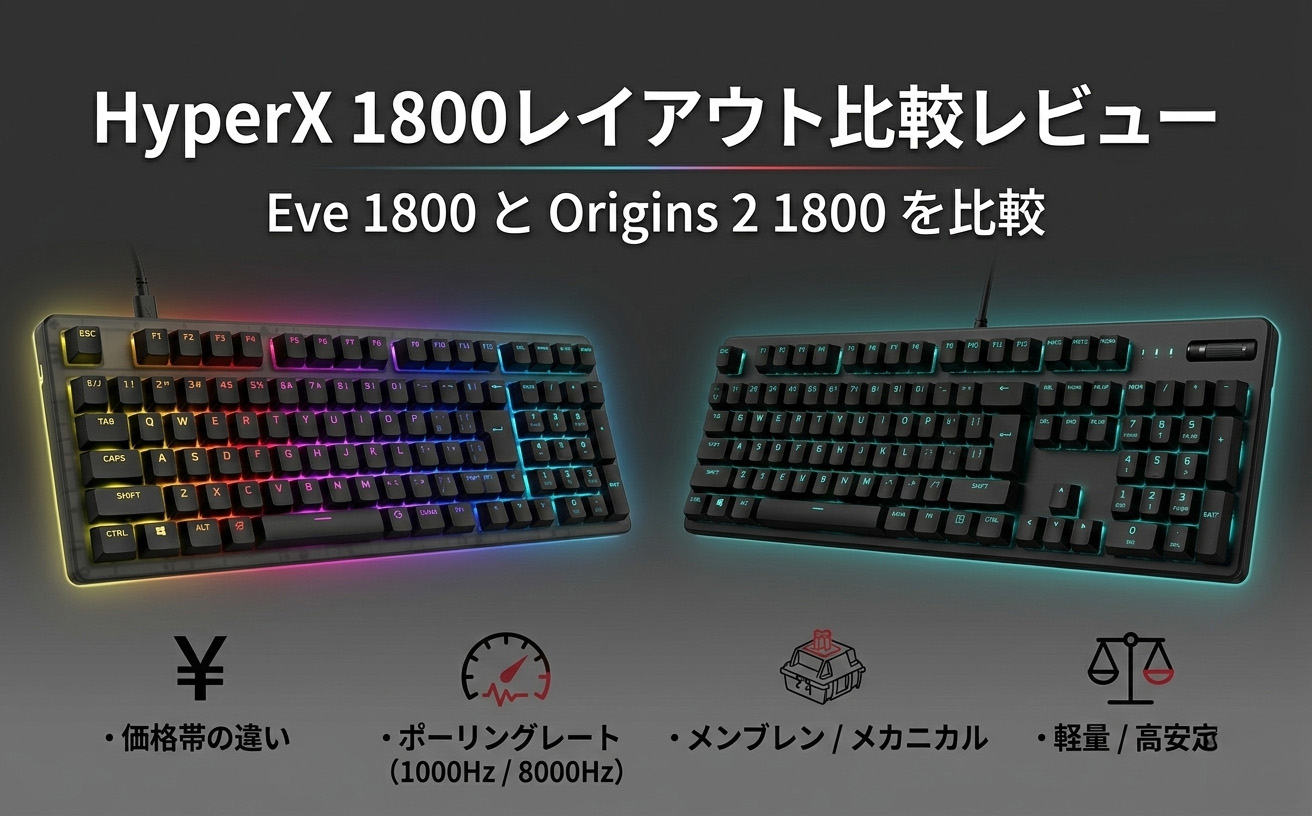 普段のタイピングや一般的なゲームでは体感差は小さいかもしれません。しかし、FPSやTPSのように瞬間的な入力が勝敗に直結するジャンルでは、Origins 2 1800のほうが余裕のある設計と言えるでしょう。