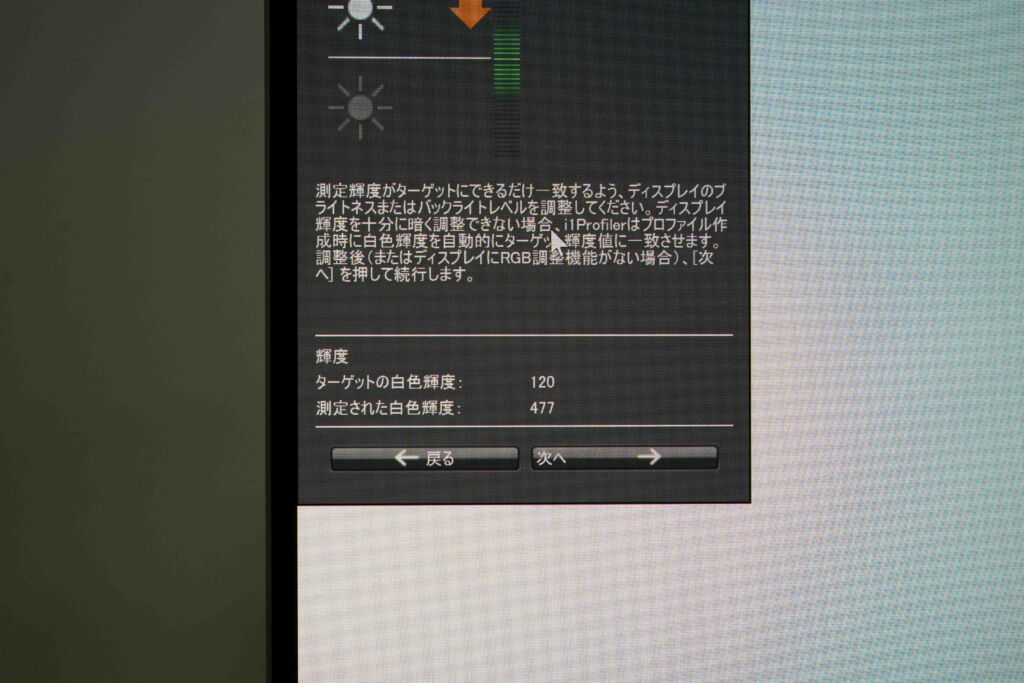 画面の明るさは、測定結果で最大477nitでした。