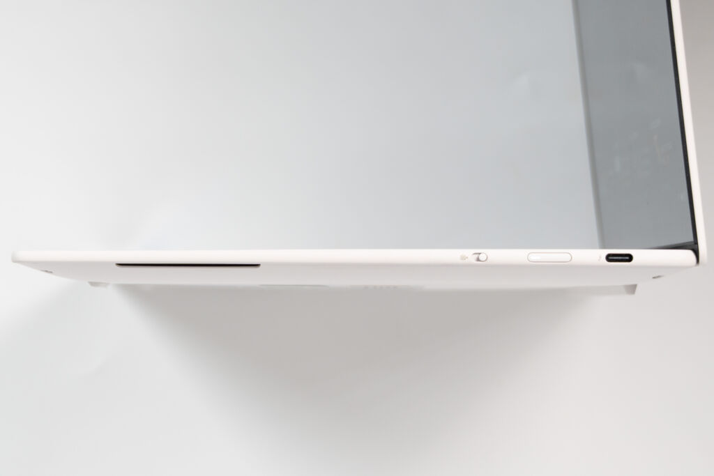 今回のカラーは白を基調としたデザインです。天板からキーボード面までトーンが統一されていて、全体として清潔感のある見た目にまとまっています。