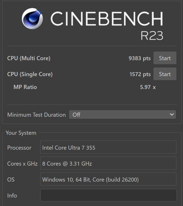 | CPU | Intel Core Ultra 7 355 |