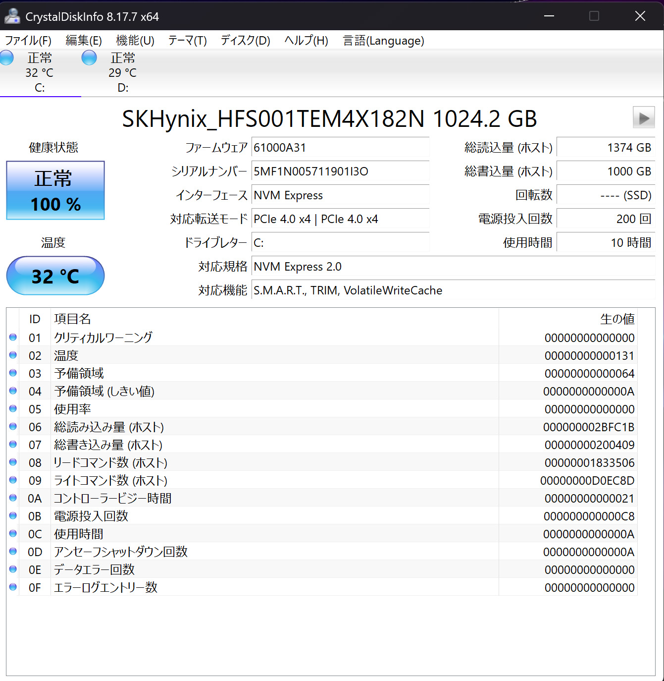 | メモリ | 32GB(オンボード) |
