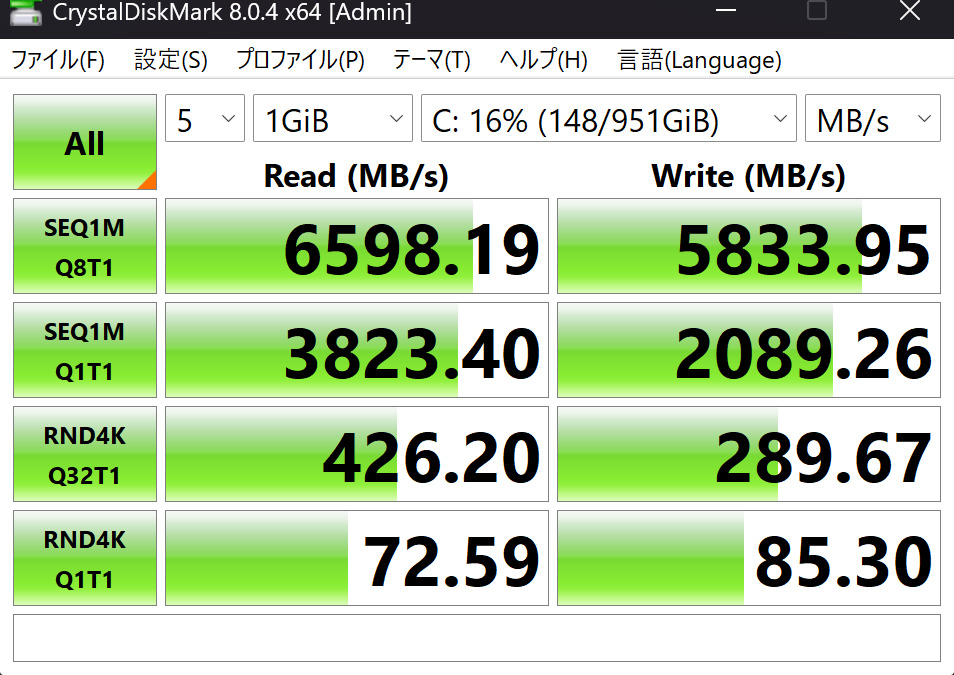 - 読込:最大 6,598MB/s