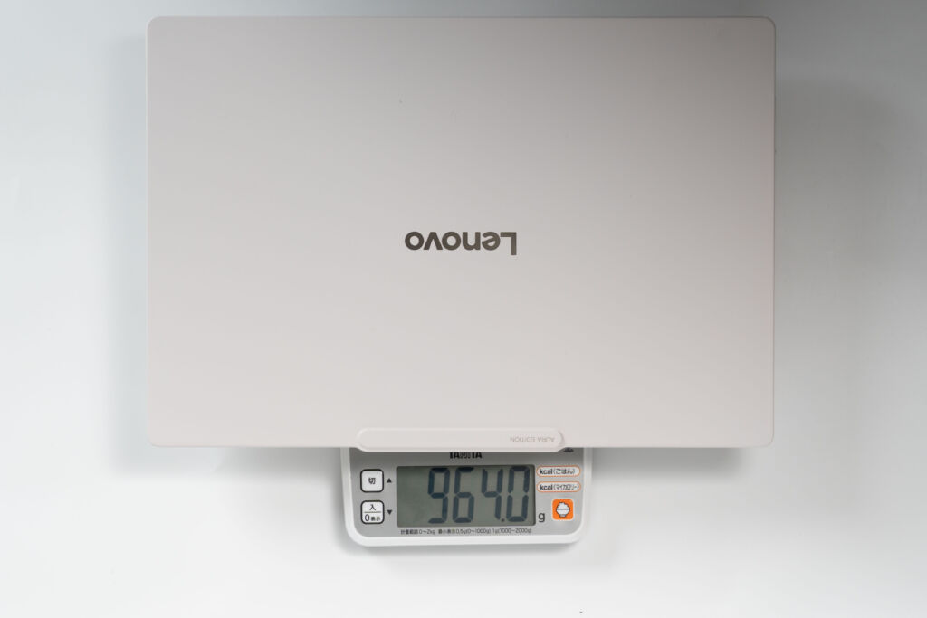メーカー公称の「1kg切り」を、ちゃんと現実の数値として確認できています。14型でこの軽さは、持ち運び前提のモバイルとしてかなり強いです。