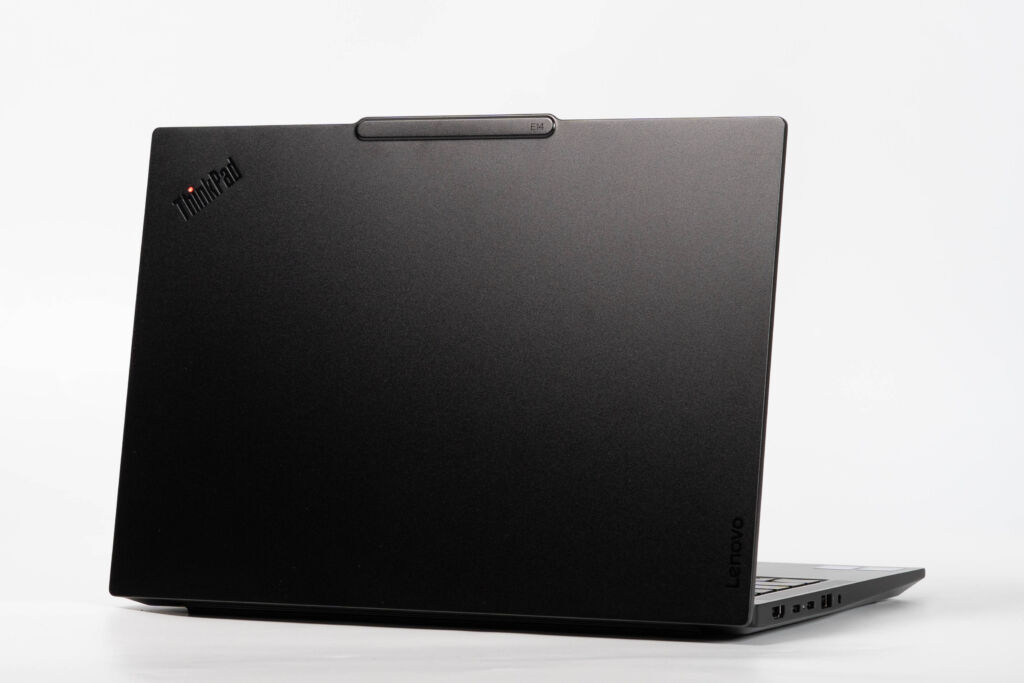 また、ボディには金属素材が採用されているため、手に取ったときの質感も良好です。廉価寄りのThinkPadという立ち位置ではあるものの、実機を見るとチープさはあまりなく、価格帯を考えるとしっかり高級感があります。仕事用として使いやすいのはもちろん、所有感の面でも満足しやすい仕上がりです。