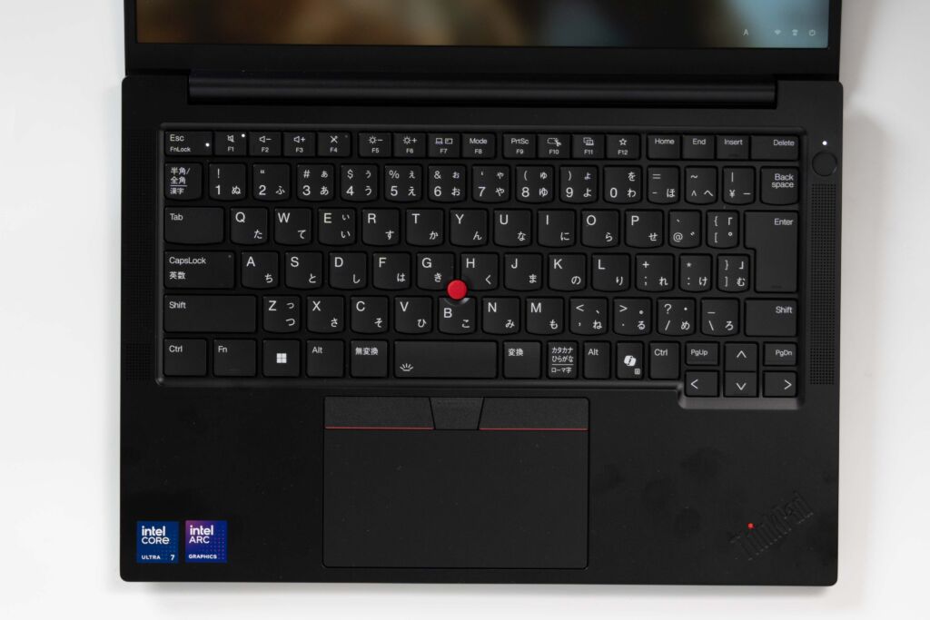 また、タッチパッドの操作性も良好で、ポインターの追従性やクリック操作も扱いやすいです。さらに、ThinkPadらしくトラックポイントと物理ボタンも搭載しているため、マウスが手元になくても快適に操作しやすいのが強みです。