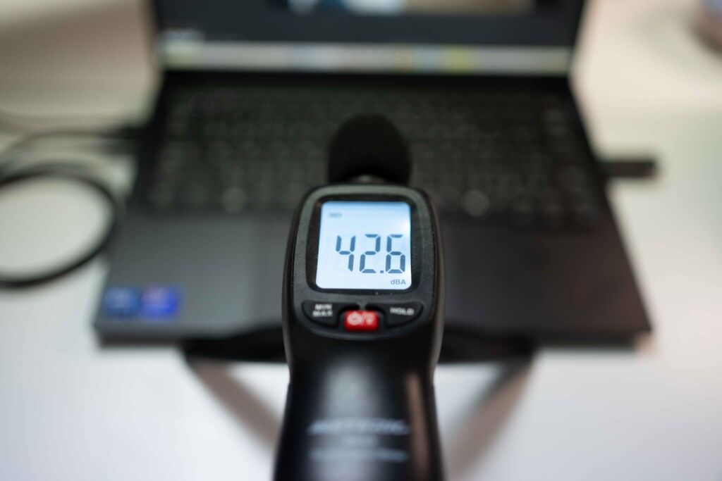 高負荷時のファン騒音は、実測で42.6dBAでした。完全に無音というわけではなく、ファンが回っていることはわかるレベルです。ただし、音の大きさとしては過度にうるさい印象はなく、不快感はかなり少ない部類です。