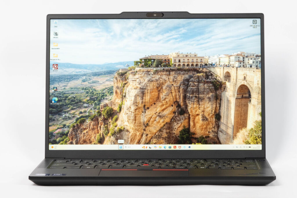 ThinkPad E14 Gen 7 ILL(14型 Intel)のディスプレイサイズは14型で、IPS方式の液晶パネルを搭載しています。視野角が広く、正面から見るだけでなく少し角度を変えても見やすいため、日常用途では扱いやすいパネルです。