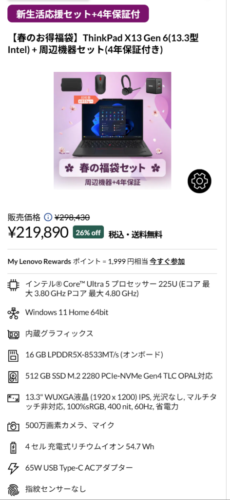 - 13.9万円はThinkPadとしてかなり買いやすい価格