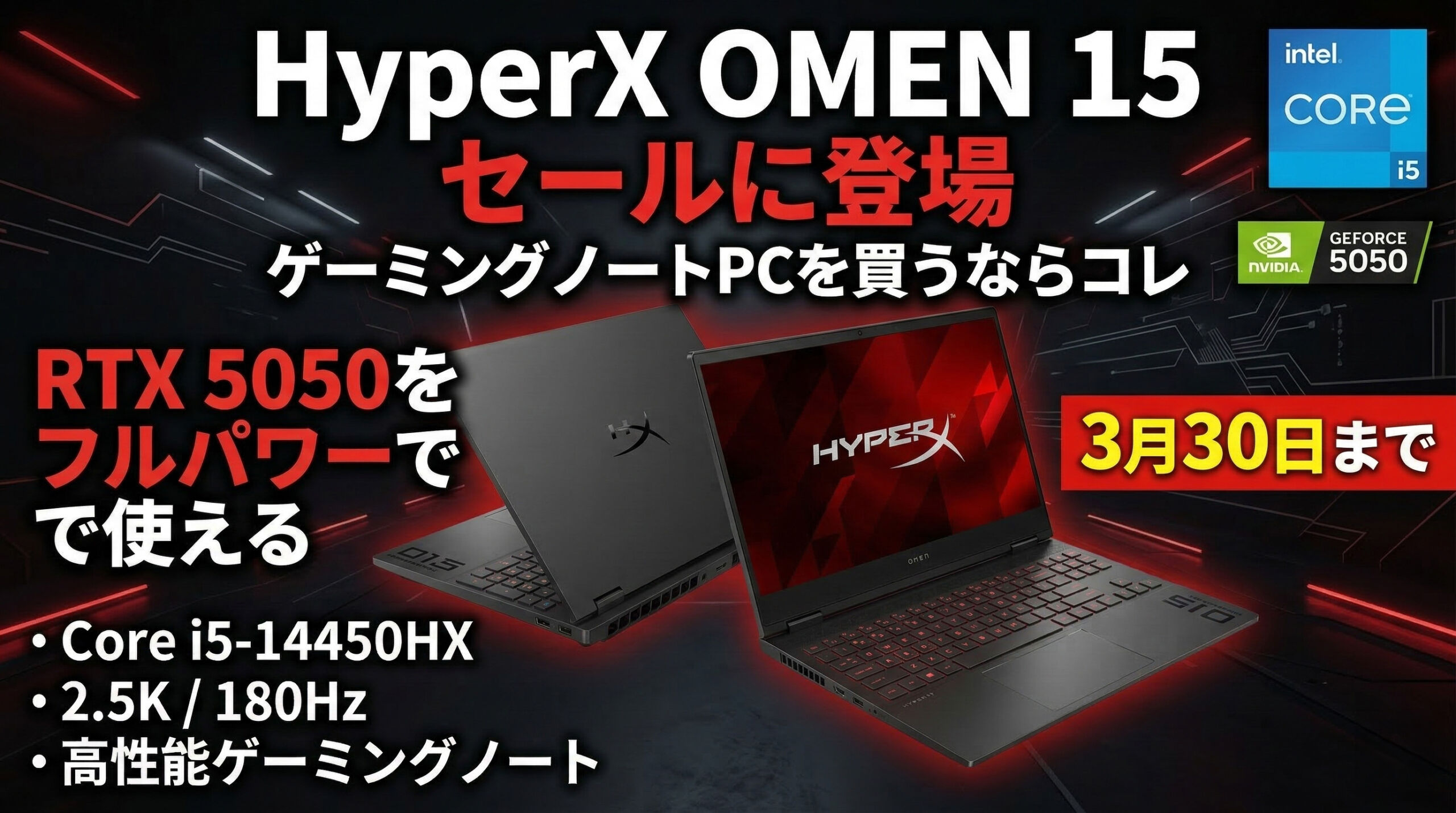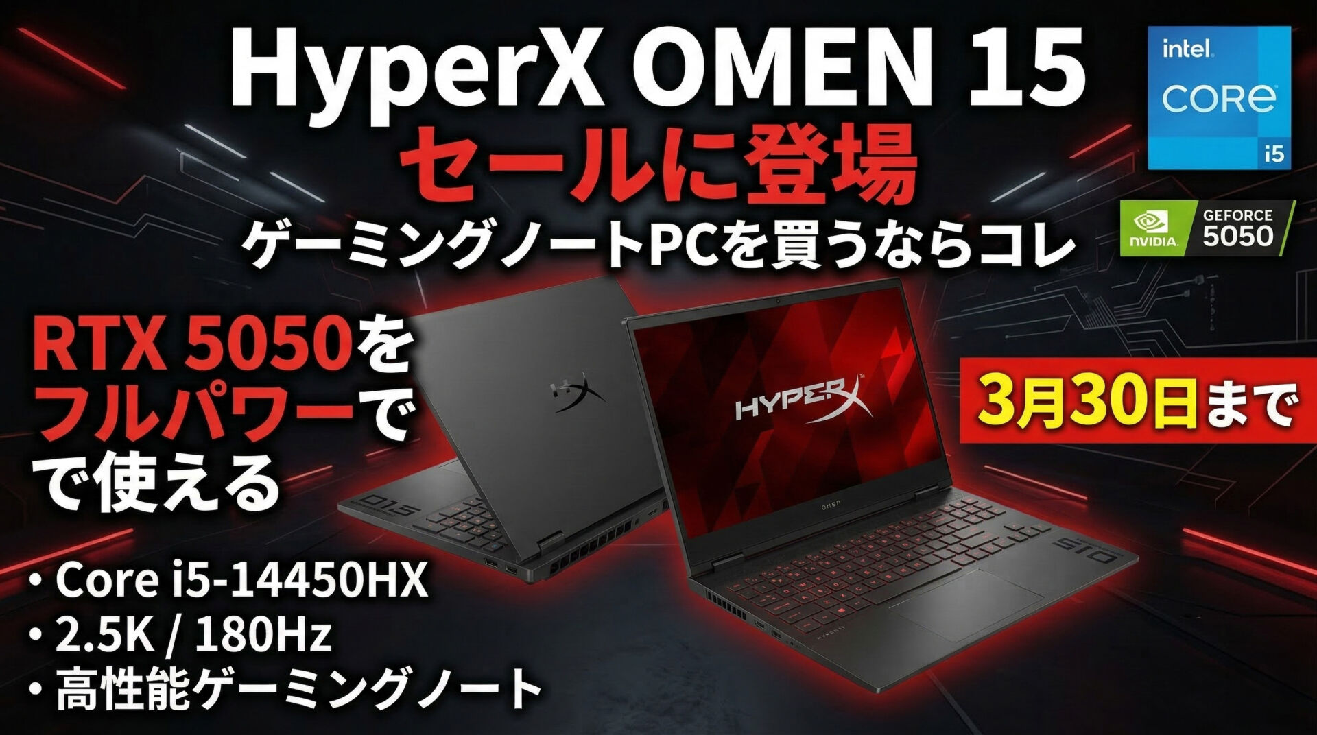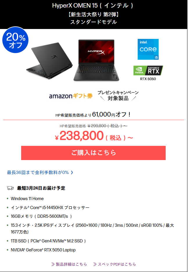 今回のセールで注目したいのが、新製品のHyperX OMEN 15が早くも23.8万円で購入できる点です。