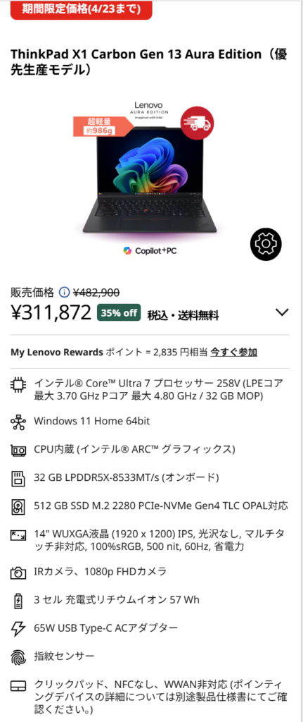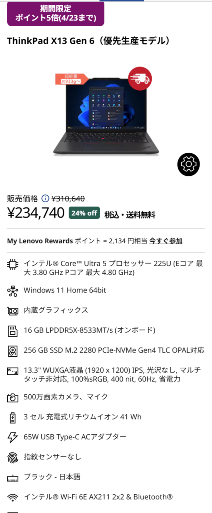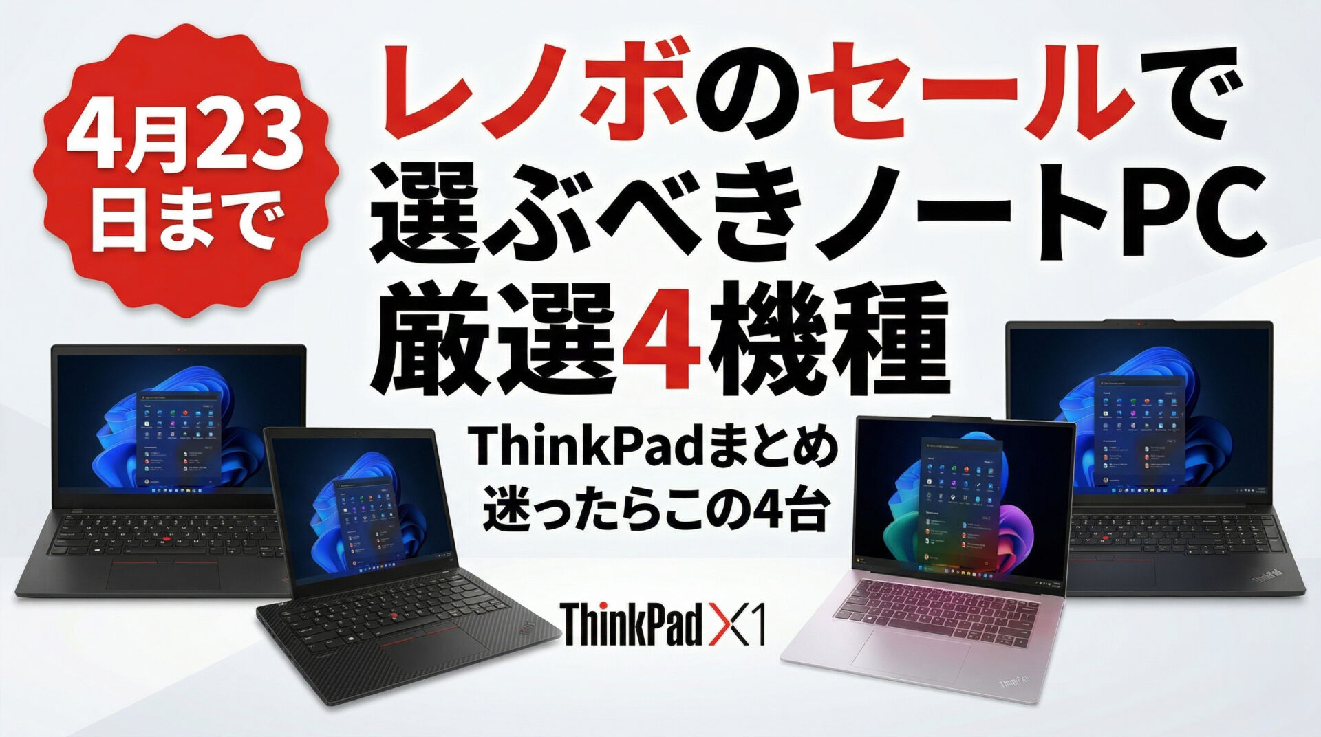 4月23日までのレノボのセールでは、ThinkPadシリーズの中でもかなり魅力的なモデルがいくつか値下がりしています。