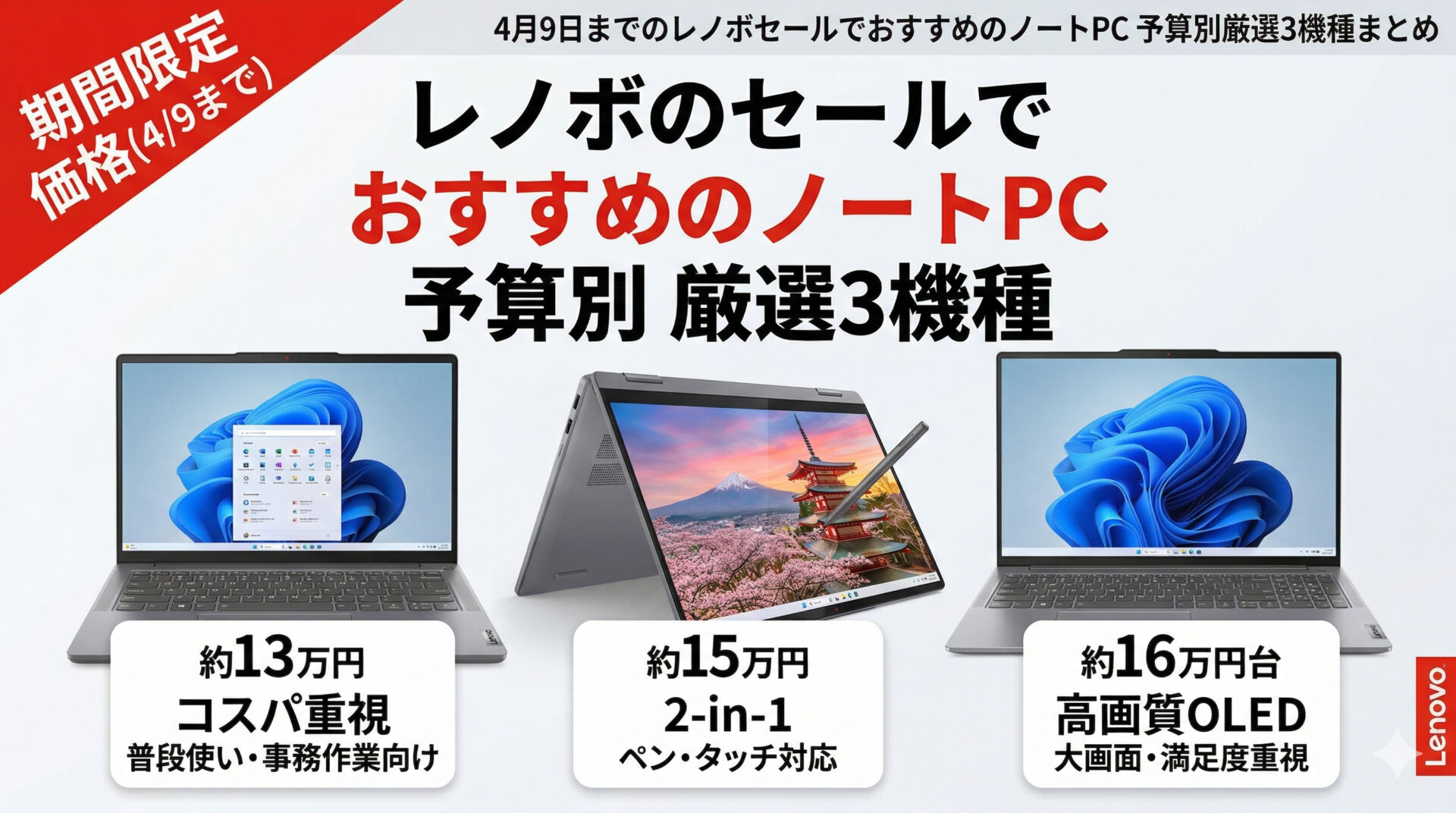 4月9日までレノボのセールでおすすめのノートPC予算別厳選3機種まとめ