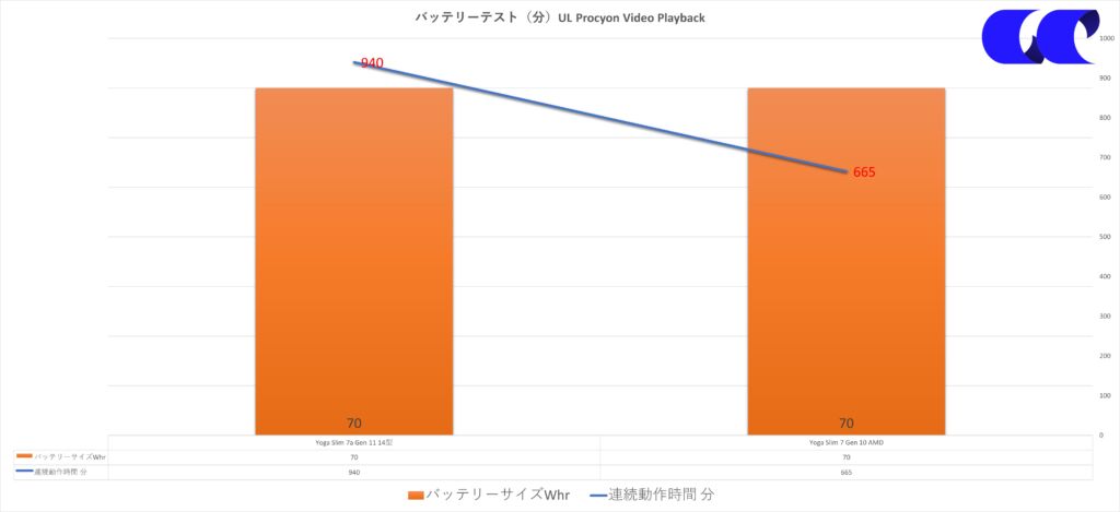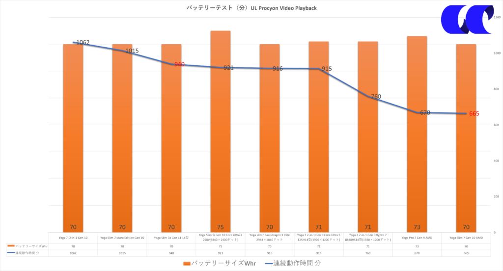 例えばトップはインテルモデルですし、Yoga Slim 7 Gen 10に至っては、直近で販売されたYogaの14型シリーズではバッテリー駆動時間が最下位でした。