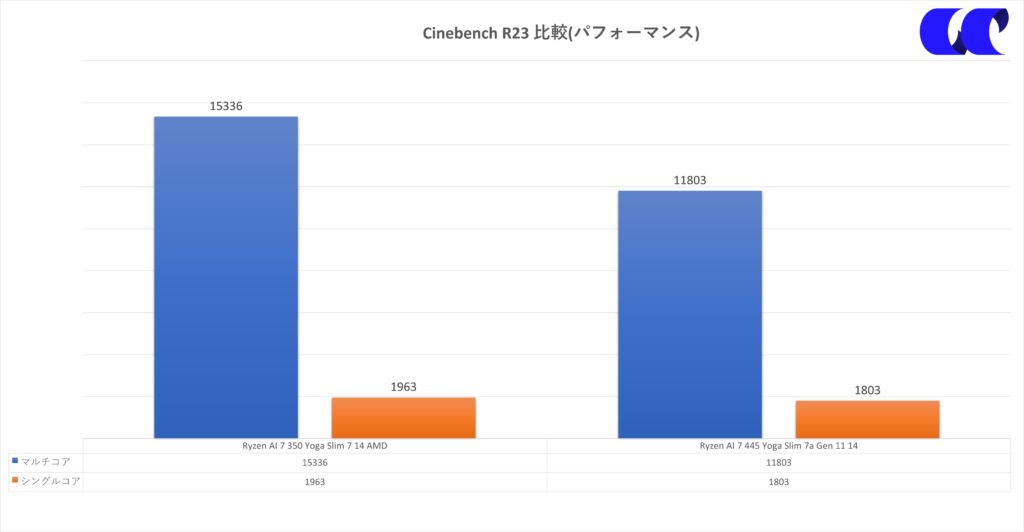 Cinebenchの結果では、マルチコア・シングルコアともに性能がダウンしています。