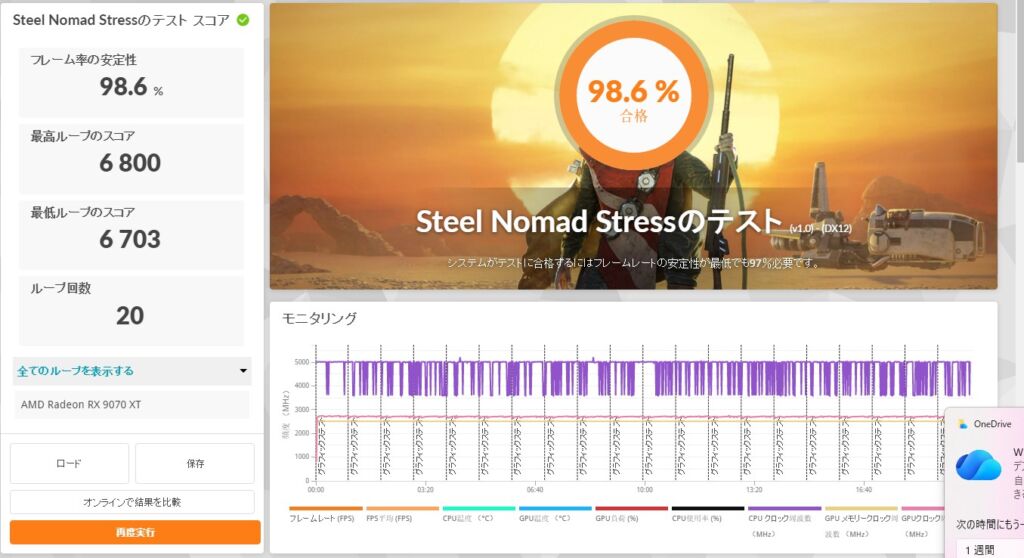 3DMarkの**Steel Nomad Stress Test(20ループ)を実施した結果、